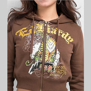 Ed Hardy Tiger Mountain Cocoa Crop Zip Hoodie - Junior